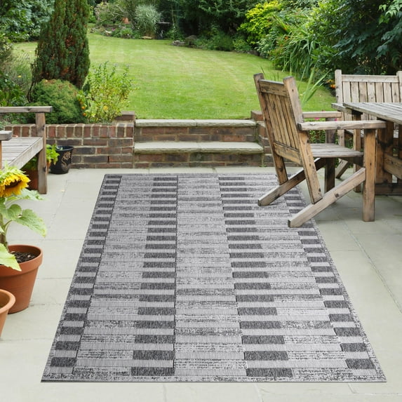 Hero image 0 of BNM Stripe Indoor Outdoor Area Rug, 7' 10" x 9' 10", Grey, 0 of 8