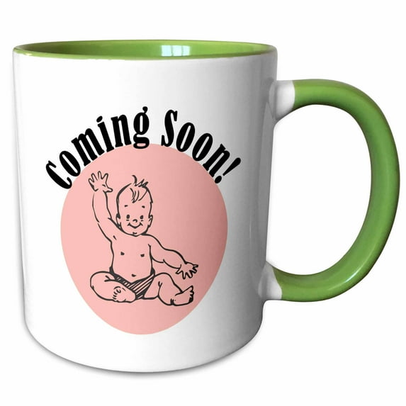 Hero image 0 of 3drose, Baby Coming Soon Pink, 11oz Two-tone Green Mug, 0 of 6