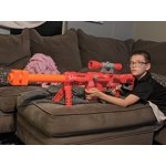 Inspired by the equipment used in Fortnite, the Nerf Heavy SR blaster captures the look of the equipment in the popular video game. This is the longest Nerf Fortnite blaster ever, measuring an awesome 43 inches long (1.1 meter) from barrel to stock! Step onto the field -- just the size of this blaster alone is enough to impress -- and intimidate -- your opponents. Now go ahead and take those long-distance shots to take control of the game! The blaster features the Red Camo Wrap from the game. It includes a 6-dart clip and 6 Official Mega Nerf darts that unleash with bolt-action priming. Load the clip into the blaster, slide the bolt to ready a dart for firing, then press the trigger to blast the dart toward your target. No batteries required. Eyewear recommended (not included). With high performance sports action, this Nerf Blaster is one of the most action packed kids outdoor toys for boys and girls. It makes great Fortnite gifts or gifts for 8 year old boys and girls and up that love playing with Nerf Blasters and Fortnite toys.