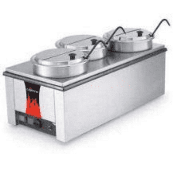 - Comprehensive Accessories: Includes an accessory kit with an adaptor plate, three 7-1/4 quart insets, three hinged covers, and three heavy-duty 4 oz. ladles.