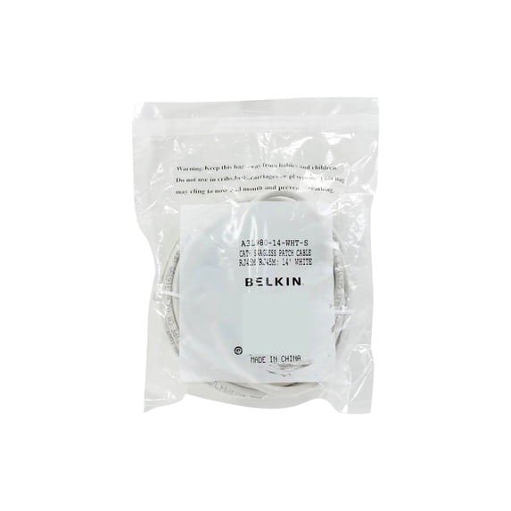 15 out of 5 Stars. 1 reviewsShipping, arrives in 3+ daysBelkin CE001B03-WHT-S 3 ft. Cat 6 White UTP Snagless 28AWG Patch Cable Bag & Label $14.26