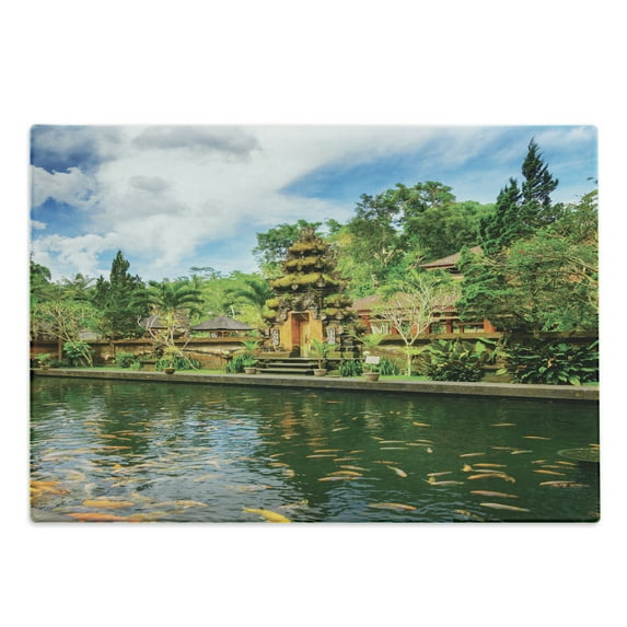 Hero image 0 of Balinese Cutting Board, Tirta Empul Building Bali Indonesia Exotic Trees Oriental Building Lake Photo, Decorative Tempered Glass Cutting and Serving Board, Large Size, Yellow Green, by Ambesonne, 0 of 1