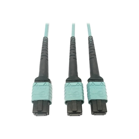 Hero image 0 of Eaton Tripp Lite Series 400G Multimode 50/125 OM4 Plenum Fiber Optic Cable, 24F MTP/MPO-PC to [x2] 12F MTP/MPO-PC [F/F], Aqua, 3 m (n846d-03m-24baq), 0 of 4