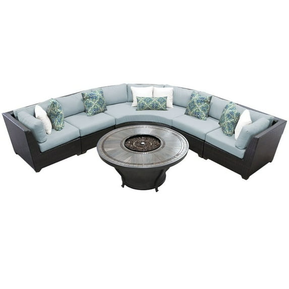 - Product Dimensions : (2) Corner Sofa - 35"W x 35"D x 29"H (2) Armless Sofa - 28"W x 35"D x 29"H (1) Curved Armless Sofa - 61"W x 35"D x 29"H (1) Huntington - 48" Round Porcelain Top Gas Fire Pit Table 24"H (Pit Diameter 18.5")