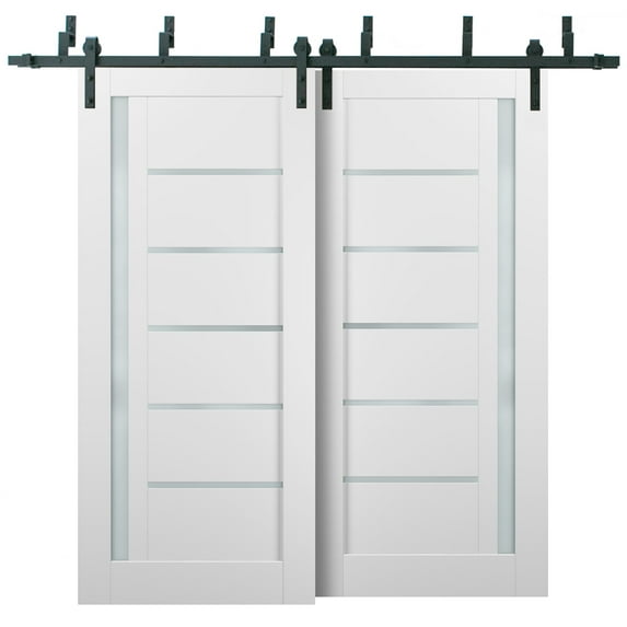 Hero image 0 of Barn Bypass Doors 36 x 96 with 6.6ft Hardware | Quadro 4088 White Silk with Frosted Opaque Glass | Sturdy Heavy Duty Rails Kit Steel Set | Double Sliding Lite Panel Door, 0 of 6
