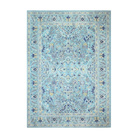 Give your living area or dining room a pop of color with the Bashian Everek 5394A Plush Indoor Area Rug. This rug is machine made of 100% polypropylene with subtle striations and distressed details. A traditional medallion pattern in shades of blue and light yellow gives it a soft look that's easy to pair with existing décor. For best care, vacuum regularly.