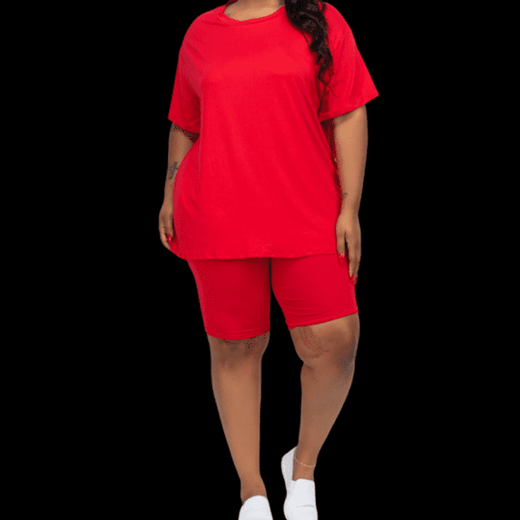This loungewear set is perfect for running errands or chilling around the house. The basic short legging set feature a loose fit top and bike shorts. It is soft, light weight and made of high stretch jersey material. The material is very comfy and soft to the touch.  They fit true to size and come in 4 different colors. Olive Green, Red, Black & Cheetah.