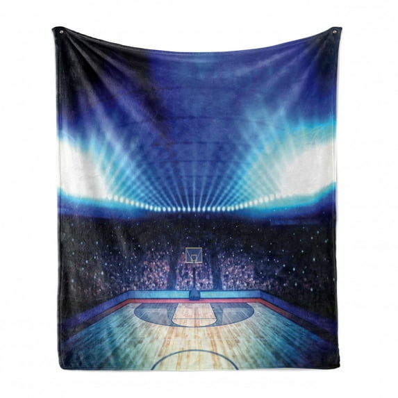 Hero image 0 of Basketball Soft Flannel Fleece Throw Blanket, Basketball Arena Court with Fans and Competition Theme Game Excitement Print, Cozy Plush for Indoor and Outdoor Use, 70" x 90", Navy Black, by Ambesonne, 0 of 6