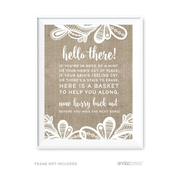 Bathroom Basket Burlap Lace Wedding Party Signs
