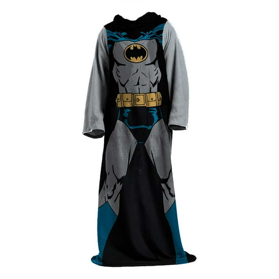 Keep warm in your favorite superhero with this Warner Bros.' Batman in Black Adult Comfy Throw Blanket with Sleeves by TheNorthwest. This throw with sleeves is the ideal choice for comfort around the home. This 48"x 71" throw features an opening in the back and long sleeves that allow for movement while staying warm. Stand up or sit down in this throw to keep cozy matching your favorite superhero.