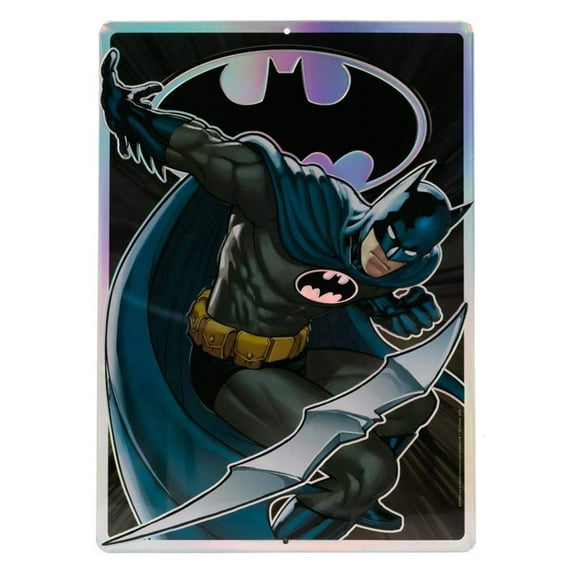 - Many superheroes are easy to admire, but you almost feel like you could BE Batman. Or is that just us? This embossed tin sign features the Dark Knight in action and the prismatic finish truly brings the details to life.