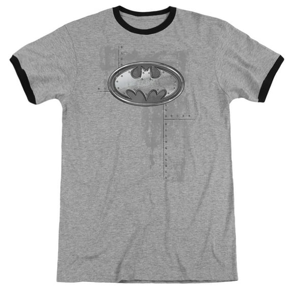 Batman Rivited Metal Logo Adult Ringer Heather Black