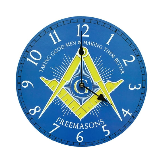- Blue Masonic Lodge Wall Clock is Battery Operated and features Square G and Compass in center of clock