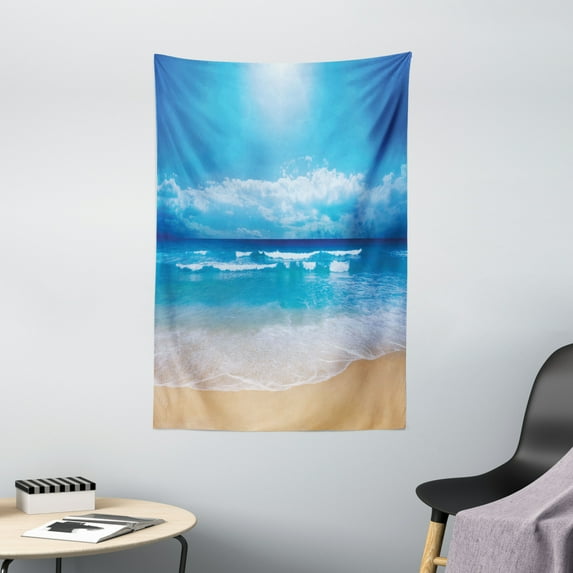 Hero image 0 of Beach Tapestry, Seascape Theme Landscape of the Beach and the Cloudy Sky in Summer Digital Print, Wall Hanging for Bedroom Living Room Dorm Decor, 40W X 60L Inches, Sand Brown Blue, by Ambesonne, 0 of 2