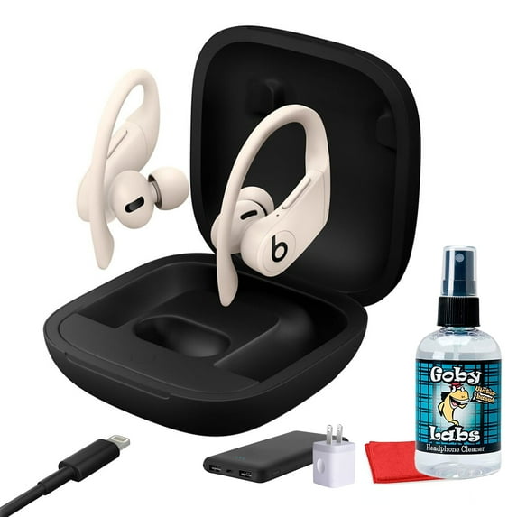 - This Bundle Includes: Beats by Dr. Dre Powerbeats Pro In-Ear Wireless Headphones (Ivory), P-Bank Battery, Charging Case, Different Sized Eartips, USB Adapter, Goby Labs Headphone Cleaner, Fiber Cloth