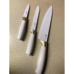 Beautiful 3-Piece Soft Grip Stainless Steel Chef Knife Set White and Gold by Drew Barrymore $15.32 Was $18.22