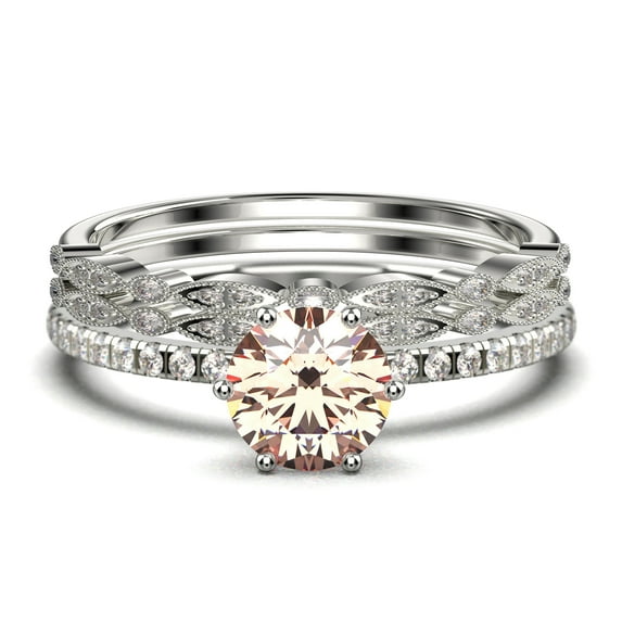 Hero image 0 of Beautiful Art Deco 2.25 Carat Round Cut Morganite And Diamond Moissanite Engagement Ring, Wedding Ring, Two Matching Band in 10k Solid White Gold, Gift For Her Gift For Girlfriend Promise Ring, 0 of 4