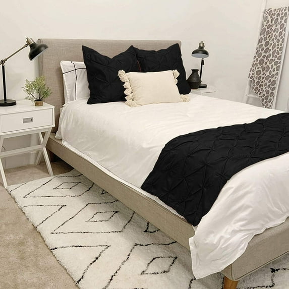 Bed Runner 100% Cotton 800 TC 1 Piece Pinch Pleated Bed Runner, Decorative Bed Scarf, 1 Pinch Pleated Luxury Bed Runner (King Size, Black)