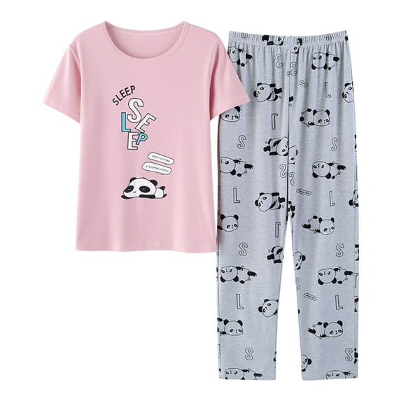 Hero image 0 of Beezizac Big Girls 2-Piece Top & Pants Cat/Panda Pajama Sets, Size 12-18, 0 of 7