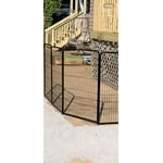 Happy to solve a need for a protection area gor ferals. Fence stands sturdy. Warning the long pins bend if you ket it toople while construction. I made an octagon shape, added a small escape door to one of the fences. I purchased the 8 panel and a 9 ft patio umbrella for roof. Securing with ties and camp pegs for wind,sun. 35 mph gust and stood in place. There were 2 panels that had small spot on top that I had to touch up . For a few scratches and one just a spot not finished.The box had a break in side. One panel had alite dent but fine beautiful look. I placed small decks and 2 hard sided cargo kennels 1 small ,2 small wooden wire spools and still have room. apx 8feet across. Im so pleased.
