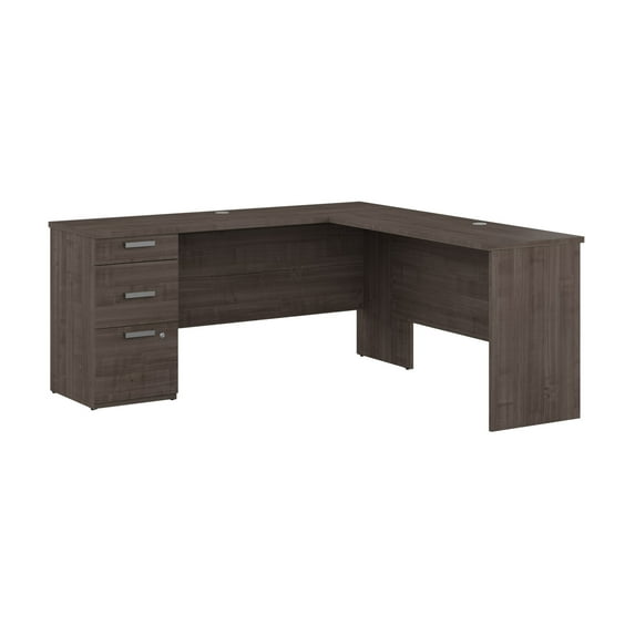 Bestar Ridgeley 65"W L-Shaped Corner Desk With Storage, Medium Gray Maple