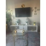 - Charming Modern Style: Featuring a sleek white high gloss finish, fluted doors, and elegant gold handles design, this media console table adds a touch of modern charm to any space. It serves as both decorative furniture and a functional storage cabinet, effortlessly complementing various room decors. Perfect for the living room, bedroom, or family room.