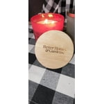 The smell of this better homes and garden candles smells so good and comes in a nice container with a wooden lid. You can not put out the flame by placing the lid on this candle as its wood. The cranberry and cherry smell brings back memories from when i was a child.