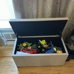 We ordered the better homes and gardens storage ottoman for extra storage space for our playroom. This ottoman already came built and seems very sturdy and great quality. It's a little smaller then we initially expected however it fits perfectly in the space we have for it and fits tons of toys! As a busy toddler mom it is so hard to keep things neat and tidy but this storage ottoman fits so many toys in it. We have lots of large cars and trucks that usually just sit on the floor and this allows us to keep them all together and clear up some space. This ottoman is 30 inches by 14.70 by 16.50 inches. It also holds up to 225lbs which makes it also a great seating bench for putting on shoes quickly and comfortably. We love it!
