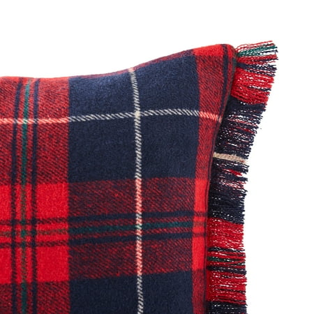 Better Homes & Gardens Feather Filled Frayed Plaid Decorative Square Throw Pillow, 18"x18", Navy/Red