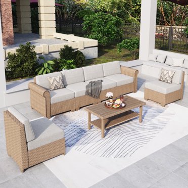 SponsoredNow $1,430.99current price Now $1,430.99$1,689.99Was $1,689.99More options from $473.99Summit Living 7-Piece Rattan Outdoor Patio Furniture Set with Modular Sofa, Wicker Outdoor Sectional Conversation Set with Faux Wood Coffee Table for 6 People, Beige165 out of 5 Stars. 16 reviewsShipping, arrives in 3+ daysSophia & William 5 Pieces Wicker Patio Furniture Set 7-Seat Outdoor Conversation Set with Cushions, Beige
