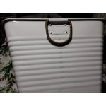 Upgrade your decor with the Better Homes & Gardens Vanilla White Galvanized Rectangle Tub. VSN is BH25100135203C1.Whether you use this for storage, creating decorative display arrangements, as a party tub to hold packaged snacks, or as an ice bucket for beverages, function meets fashion with endless possibilities. The ripple texture and white finish of the tub offer eye-catching appeal, matches and complements most decor styles with ease. The plastic rattan handles add a relaxed, resort-style element to the overall look while providing easy grips for you to carry from room to room — what a style score.