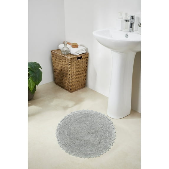 Better Trends Chic Round Bath Mat, 24" Diameter, 100% Cotton with Crochet Border, Water Absorbent, Ideal for Half Baths and Powder Rooms, Machine Washable, Gray - Lilly Crochet Collection