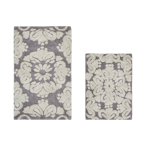 Hero image 0 of Better Trends 2 Piece Bathroom Rug Set 100% Cotton Extra Soft Tufted Bath Rug Water Absorbent Non-Slip Bath Mat Machine Washable (Gray) Medallion Collection, 0 of 7