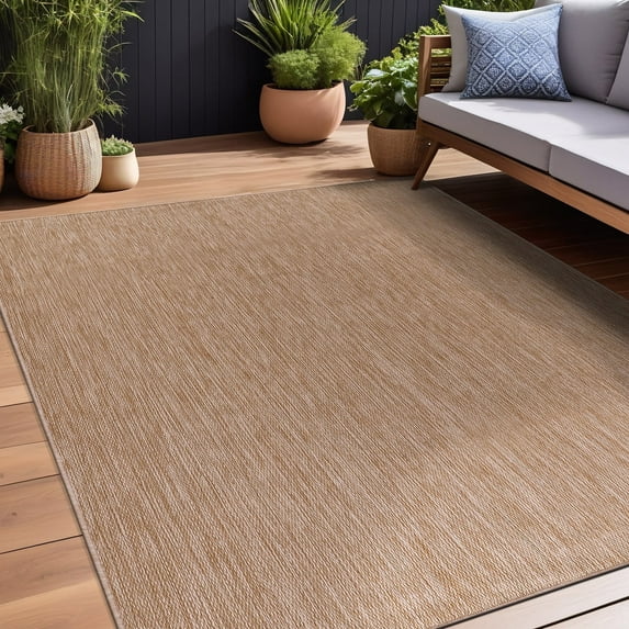 Beverly Rug Indoor/Outdoor Area Rugs, Waterproof Patio Porch Garden Carpet, Jute Beige, 9'x12'