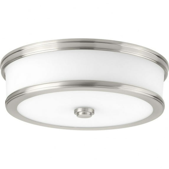 Hero image 0 of Progress Lighting, Bezel Collection, 1-Light LED Flush Mount, Brushed Nickel, Etched White Glass Shade, 0 of 5