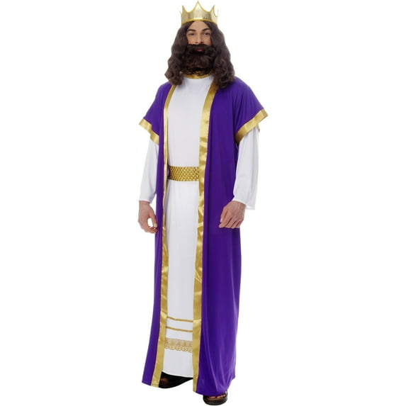 If your playing a king for a church or temple production you'll need the costume that will make you look regal and prestigious The Biblical King Costume comes with a long white robe with gold detail, a purple overcoat with gold trim, a belt and a crown. There are lots of king through out the bible and this costume will help you play any one of them. This costume can also be worn for Halloween as a regular King outfit.