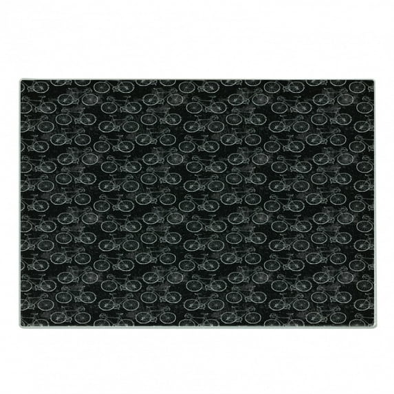 Hero image 0 of Bicycle Cutting Board, Vintage Bikes in Hand Drawn Style on a Black Background with Grunge Effect, Decorative Tempered Glass Cutting and Serving Board, Small Size, Black and White, by Ambesonne, 0 of 1