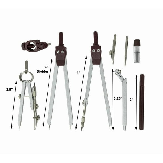 - Bild Geometry Math Compass Set includes 3 metal compasses with a protective case