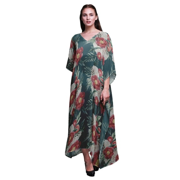 Bimba Floral Long Caftan Maxi Dress Beach Swimwear Cover up Womens Kaftan-S-L