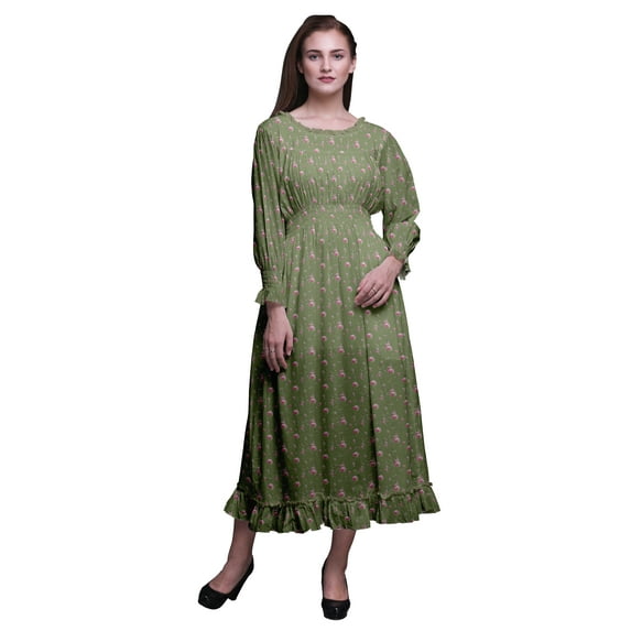 Hero image 0 of Bimba Floral Women Cotton Smocked Boho Renaissance Long Ruffle Maxi Dress-Medium, 0 of 5