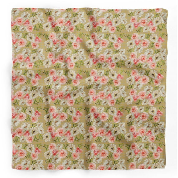 Hero image 0 of Bimba Gold Rose & Ranunculus Floral Printed Pure Silk Scarf For Hair Neck Head Bandanas For Women 40 x 80 Inches, 0 of 6