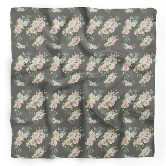 Hero image 0 of Bimba Gray Leaves & Ranunculus Floral Printed Pure Silk Scarf For Hair Neck Head Bandanas For Women 40 x 40 Inches, 0 of 6