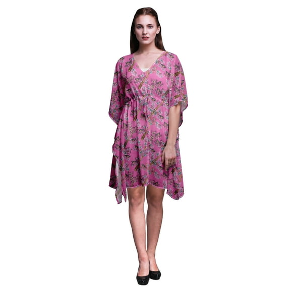 Hero image 0 of Bimba Light Pink4 Bird Blue Floral & American Robin Womens Short Beach Kaftan Beachwear Bikini Coverup Midi Dress-4X-5X, 0 of 5