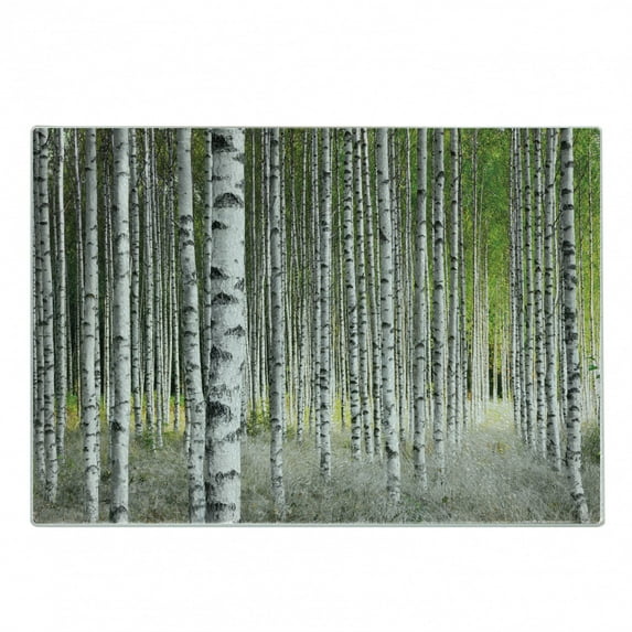 Hero image 0 of Birch Tree Cutting Board, Peaceful Late Summer Woodland Trunks Leaves Foliage Serene Tranquil, Decorative Tempered Glass Cutting and Serving Board, Small Size, Green Pale Grey Black, by Ambesonne, 0 of 1