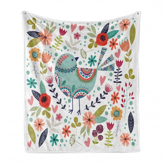 Folk Soft Flannel Fleece Throw Blanket, Cartoon of Ornate Bird with Abstract Flowers Print, Cozy Plush for Indoor and Outdoor Use, 50" x 70", Multicolor, by Ambesonne $27.99