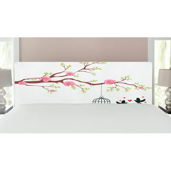 Birds Headboard, Blossomed Roses and Flying Love Animals Hearts and Cage Couple Romance Love, Upholstered Decorative Metal Bed Headboard with Memory Foam, King Size, Pink Brown White, by AmbesonneBirds Headboard Blossomed Roses Flying Love Animals Hearts Cage Couple Romance Love Upholstered Decorative Metal Bed Headboard Memory Foam King Size Birds Headboard Blossomed Roses Flying Love Animals Hearts Cage Couple Romance Love Upholstered Decorative Metal Bed Headboard Memory Foam Full Size