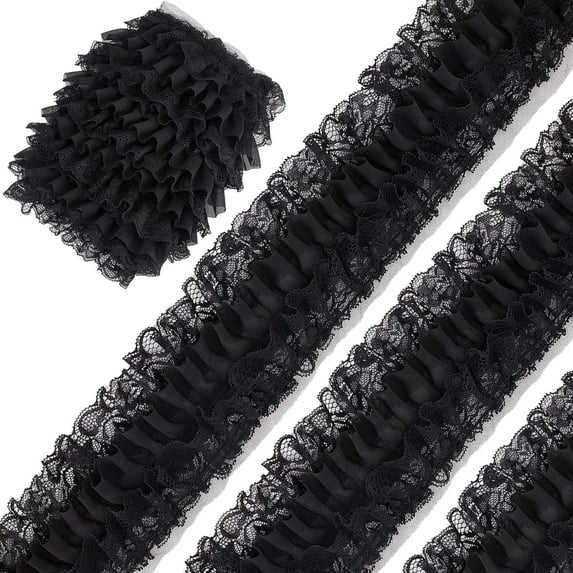 Hero image 0 of Black 3-Layer Pleated Chiffon Lace Trim 4 Inch Width Ruffled Satin Organza Lace Fabric Frills Wide Mesh Tulle Woven Ruffle Fringe Ribbon for Sewing Clothing Curtain Decor Dress Crafts DIY DIY, 0 of 9