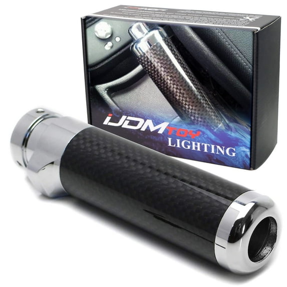 - Includes (1) parking handbrake lever made from alloy metal with a gloss black genuine carbon fiber with silver chrome trim