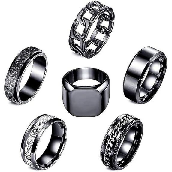 Hero image 0 of Black Stainless Steel Rings for Men 6pcs Mens Rings Band Fidget Ring Cool Spinner Rings for Men, 0 of 7