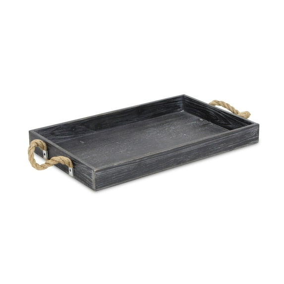 Black Wooden Tray with Rope Handles